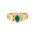 | 14KT DIAMOND & EMERALD OVAL FLUTED RING D.07 E.50-YG |
