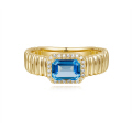 | 14KT DIAMOND & BLUE TOPAZ FLUTED RING D.0.09 BT.1.25-YG |