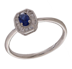 14KT DIAMOND & SAPPHIRE BAGUETTE RING D.20 S.25-WG