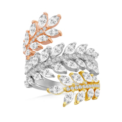 18KT DIAMOND TRI COLOR 3 LEAF RING D.2.75CT-WYP