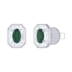 14KT DIAMOND & EMERALD EARRINGS D.36 E.40-WG