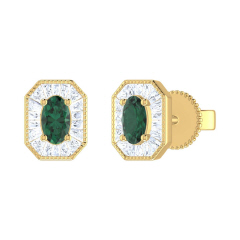 14KT DIAMOND & EMERALD EARRINGS D.36 E.40-YG