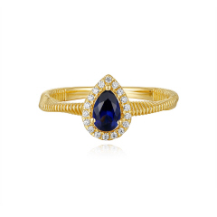 14KT DIAMOND & PEAR SHAPED SAPPHIRE FLUTED RING D.0.09 S.39-YG