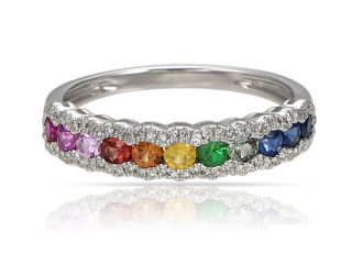 Description14KT DIAMOND & MULTI COLORED SAPPHIRE RING D.15 S.70-WG