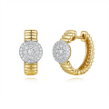 | 14KT DIAMOND ROUND PAVE FLUTED HUGGY EARRINGS D.37-YG |