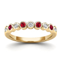 | 14KT DIAMOND & RUBY BEZEL SET BAND D.13 R.19-YG |