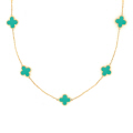 | 14KT 18 INCH 5 MALACHITE CLOVERS BY THE YARD NECKLACE MA5.11CT |