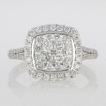 | 14KT DIAMOND DOUBLE HALO CLUSTER ROUND RING D.25-WG |