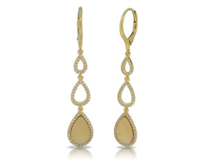 14KT DIAMOND & MOTHER OF PEARL TRIPLE PEAR DROP EARRINGS D.35-YG